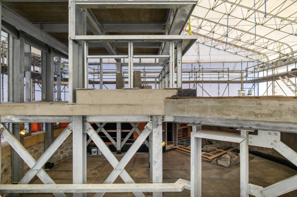 A military structure in Saint-John, New Brunswick, the Carleton Martello Tower is a unique combination of an 1812 era fortification and WW2 era Command Post. The heavily deteriorated and unstable masonry requires extensive repair, and the project mandate includes the replacement of the massive concrete addition with a lightweight replica. Unfinished Portland cement panels fastened to a steel frame replaces the original Command Post, preserving the general character of the place while being clearly a modern intervention.